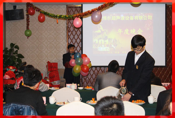 此次年會由公司行政部門精心策劃,聘請了專業(yè)的主持和音控團隊。公司員工精心布置了會場、安排各游戲互動環(huán)節(jié),財務(wù)部購置了豐盛的獎品;使得寧波博爾超聲波設(shè)備有限公司2013年年度晚會舉辦的成功、歡樂、祥和、圓滿!